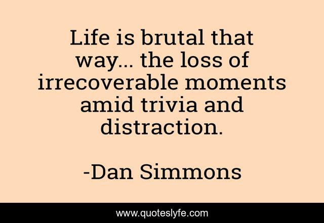 This page presents the quote "Life is brutal that way... the loss of irrecoverable moments amid trivia and distraction.". Author of this quote is Dan Simmons. This quote is about cantos-3, endymion, sad, dan-simmons, inspirational, enthusiasm, sad-but-true, hyperion,.