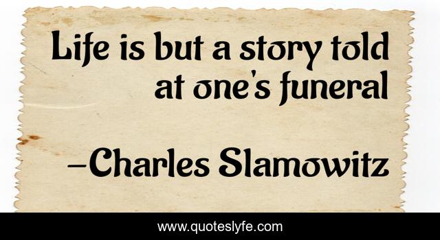 This page presents the quote "Life is but a story told at one's funeral". Author of this quote is Charles Slamowitz. This quote is about making-moves, philosophy, funeral, charles, your-mother, slamowitz, life-philosophy, inspiration, charles-slamowitz,.