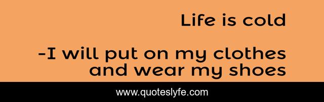 This page presents the quote "Life is cold". Author of this quote is I will put on my clothes and wear my shoes. .