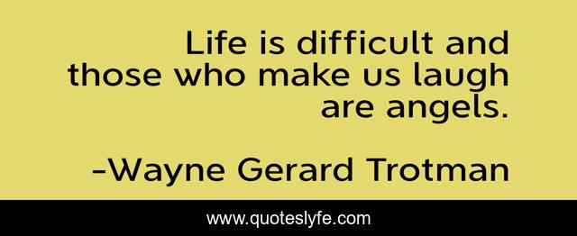 This page presents the quote "Life is difficult and those who make us laugh are angels.". Author of this quote is Wayne Gerard Trotman. This quote is about gratitude, life, laughter-is-the-best-medicine, humour, angels, quotable, challenges, difficulty, laughing,.