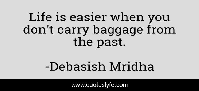 This page presents the quote "Life is easier when you don't carry baggage from the past.". Author of this quote is Debasish Mridha. This quote is about life, love, knowledge, inspirational, intelligence, philosophy, wisdom, past, baggage,.