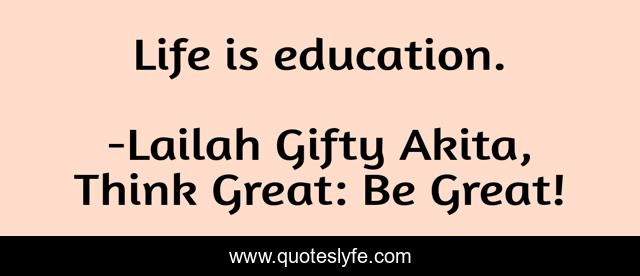 "Lailah Gifty Akita, Think Great: Be Great! Quotes." Quoteslyfe.com, 2025. Sun. 07 Dec. 2025. <https://www.quoteslyfe.com/quote/Life-is-education-125476>.
