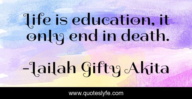 This page presents the quote "Life is education, it only end in death.". Author of this quote is Lailah Gifty Akita. This quote is about life, death, education, learning,.