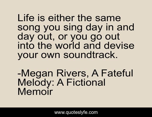 This page presents the quote "Life is either the same song you sing day in and day out, or you go out into the world and devise your own soundtrack.". Author of this quote is Megan Rivers, A Fateful Melody: A Fictional Memoir. This quote is about new-adult-fiction, young-adult-romance, young-adult-fiction, music, new-adult-romance, megan-rivers,.