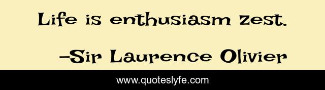 This page presents the quote "Life is enthusiasm zest.". Author of this quote is Sir Laurence Olivier. .