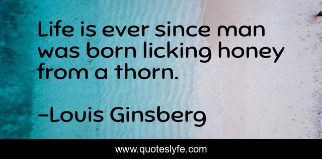 This page presents the quote "Life is ever since man was born licking honey from a thorn.". Author of this quote is Louis Ginsberg. .