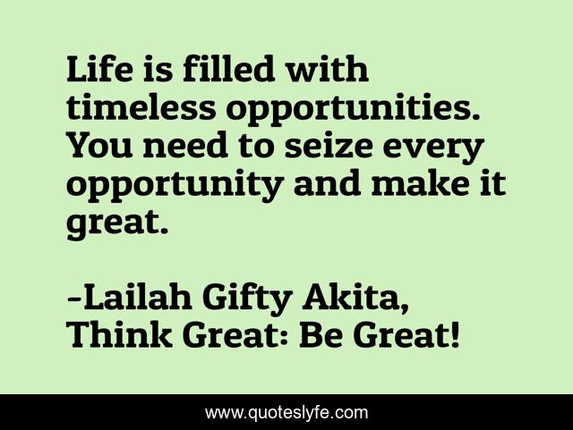 "Lailah Gifty Akita, Think Great: Be Great! Quotes." Quoteslyfe.com, 2025. Mon. 08 Dec. 2025. <https://www.quoteslyfe.com/quote/Life-is-filled-with-timeless-opportunities-You-125469>.