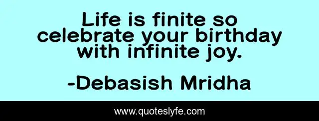 This page presents the quote "Life is finite so celebrate your birthday with infinite joy.". Author of this quote is Debasish Mridha. This quote is about inspirational, philosophy, debasish-mridha, birthday-greeting, quotes, life-is-finite, debasish-mridha-md, celebrate-your-birthday, enthusiasm,.