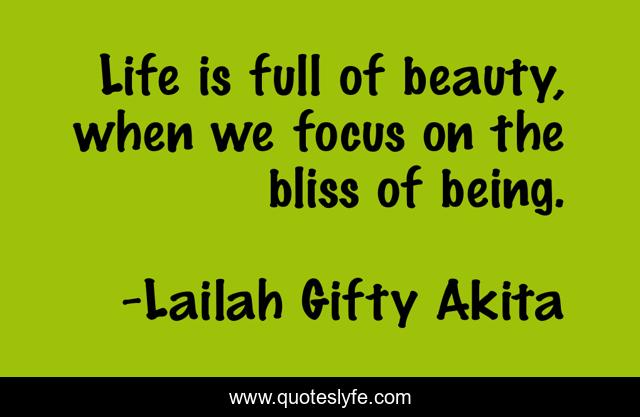 This page presents the quote "Life is full of beauty, when we focus on the bliss of being.". Author of this quote is Lailah Gifty Akita. This quote is about life, beauty, wise-words, self-help, life-philosophy, inspiration,.