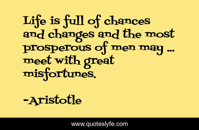 This page presents the quote "Life is full of chances and changes and the most prosperous of men may ... meet with great misfortunes.". Author of this quote is Aristotle. This quote is about recognize, maximize,.