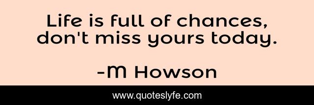 This page presents the quote "Life is full of chances, don't miss yours today.". Author of this quote is M Howson. This quote is about enthusiasm, chance, life, inspirational,.