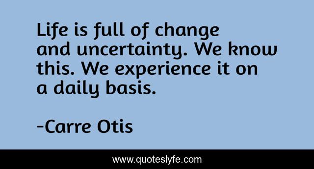 This page presents the quote "Life is full of change and uncertainty. We know this. We experience it on a daily basis.". Author of this quote is Carre Otis. This quote is about life, change, daily,.