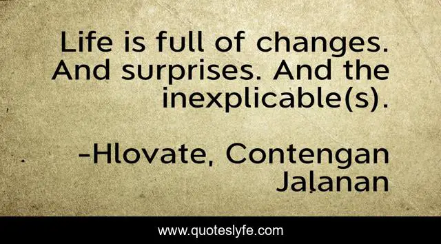 This page presents the quote "Life is full of changes. And surprises. And the inexplicable(s).". Author of this quote is Hlovate, Contengan Jalanan. .