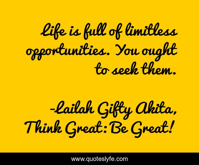 "Lailah Gifty Akita, Think Great: Be Great! Quotes." Quoteslyfe.com, 2025. Tue. 09 Dec. 2025. <https://www.quoteslyfe.com/quote/Life-is-full-of-limitless-opportunities-You-95187>.