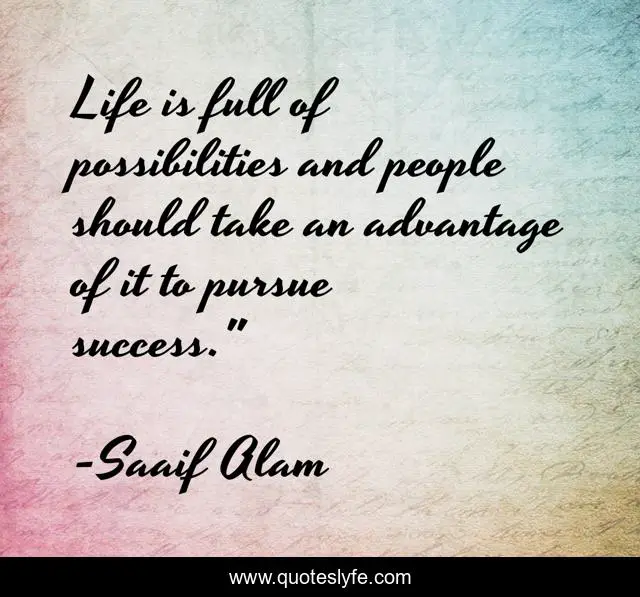 This page presents the quote "Life is full of possibilities and people should take an advantage of it to pursue success."". Author of this quote is Saaif Alam. .