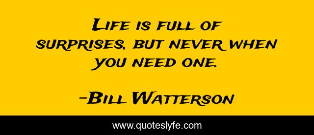 This page presents the quote "Life is full of surprises, but never when you need one.". Author of this quote is Bill Watterson. This quote is about surprises, disappointment,.