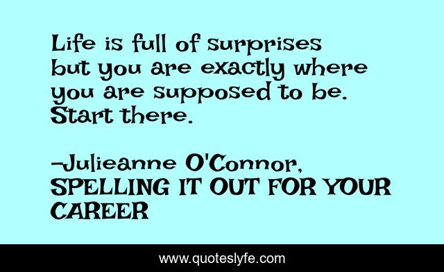 "Julieanne O'Connor, SPELLING IT OUT FOR YOUR CAREER Quotes." Quoteslyfe.com, 2025. Mon. 08 Dec. 2025. <https://www.quoteslyfe.com/quote/Life-is-full-of-surprises-but-you-49754>.