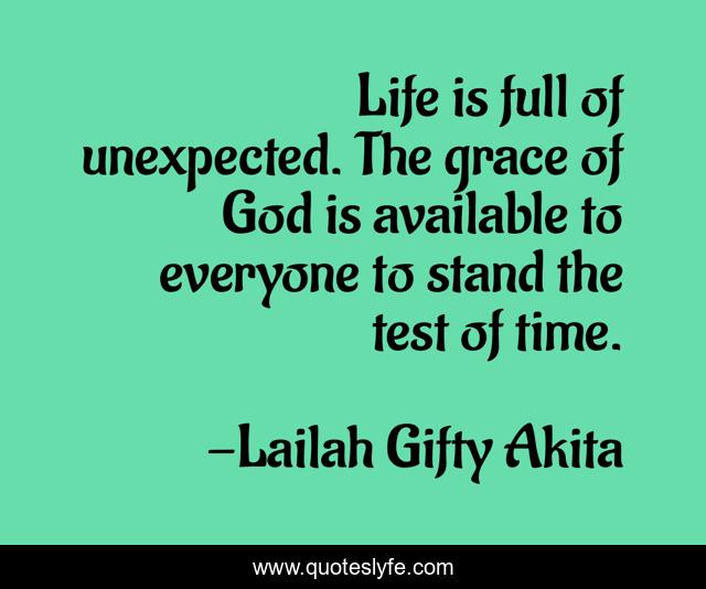 This page presents the quote "Life is full of unexpected. The grace of God is available to everyone to stand the test of time.". Author of this quote is Lailah Gifty Akita. This quote is about life, endurance-and-attitude, grace,.