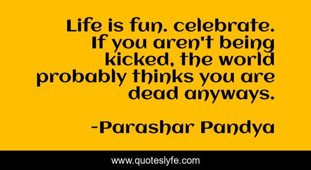 This page presents the quote "Life is fun. celebrate. If you aren't being kicked, the world probably thinks you are dead anyways.". Author of this quote is Parashar Pandya. This quote is about fun, life, motivation, celebrate,.