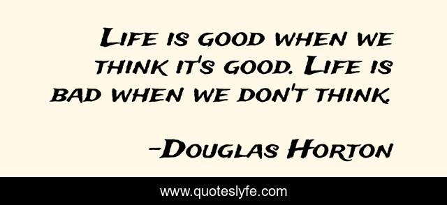 This page presents the quote "Life is good when we think it's good. Life is bad when we don't think.". Author of this quote is Douglas Horton. This quote is about life, think, good life,.