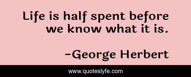 This page presents the quote "Life is half spent before we know what it is.". Author of this quote is George Herbert. This quote is about half, before,.