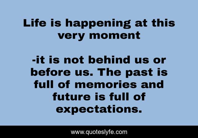 This page presents the quote "Life is happening at this very moment". Author of this quote is it is not behind us or before us. The past is full of memories and future is full of expectations.. .