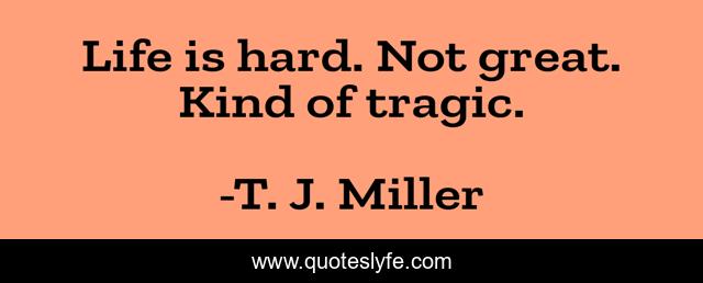 This page presents the quote "Life is hard. Not great. Kind of tragic.". Author of this quote is T. J. Miller. This quote is about life is hard, life, kind,.