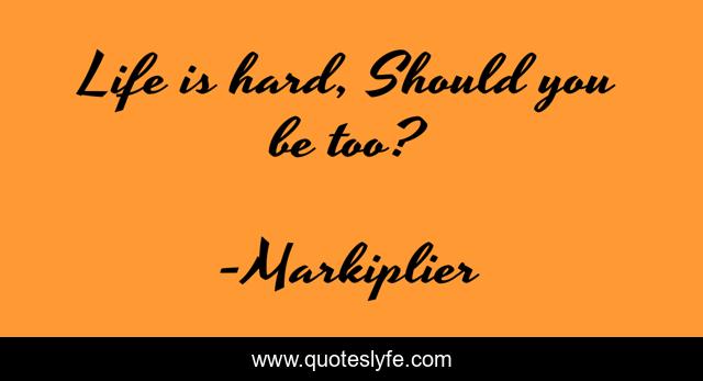 This page presents the quote "Life is hard, Should you be too?". Author of this quote is Markiplier. .