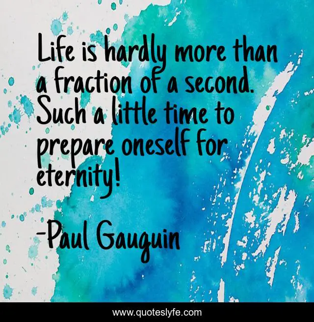 This page presents the quote "Life is hardly more than a fraction of a second. Such a little time to prepare oneself for eternity!". Author of this quote is Paul Gauguin. This quote is about life, little, prepare,.