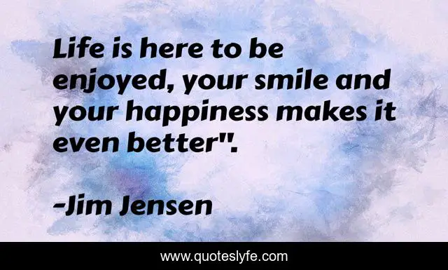 This page presents the quote "Life is here to be enjoyed, your smile and your happiness makes it even better".". Author of this quote is Jim Jensen. This quote is about better, smile, life, happiness,.