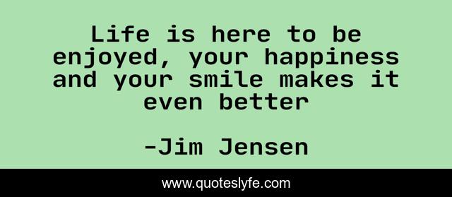 This page presents the quote "Life is here to be enjoyed, your happiness and your smile makes it even better". Author of this quote is Jim Jensen. This quote is about enjoy, smile, life, happiness,.