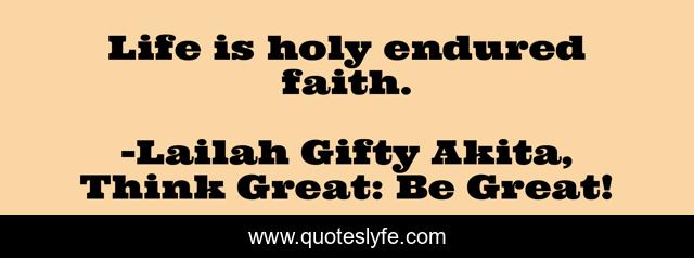 "Lailah Gifty Akita, Think Great: Be Great! Quotes." Quoteslyfe.com, 2025. Sun. 07 Dec. 2025. <https://www.quoteslyfe.com/quote/Life-is-holy-endured-faith-147165>.