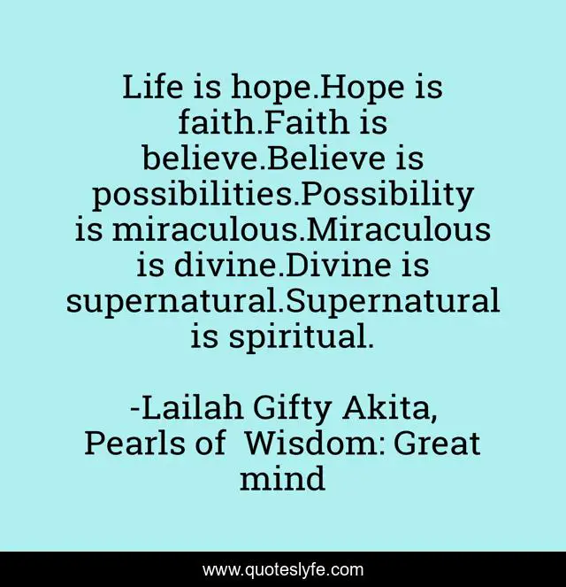 "Lailah Gifty Akita, Pearls of Wisdom: Great mind Quotes." Quoteslyfe.com, 2025. Tue. 09 Dec. 2025. <https://www.quoteslyfe.com/quote/Life-is-hope-Hope-is-faith-Faith-116051>.
