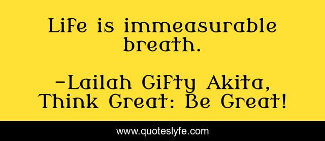 "Lailah Gifty Akita, Think Great: Be Great! Quotes." Quoteslyfe.com, 2025. Sat. 06 Dec. 2025. <https://www.quoteslyfe.com/quote/Life-is-immeasurable-breath-140350>.