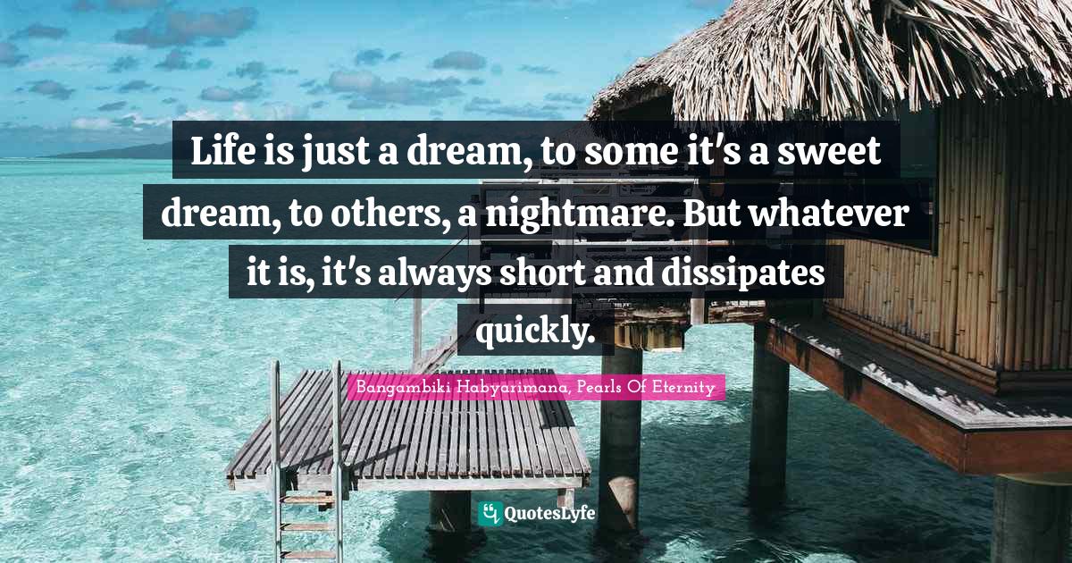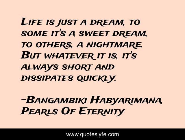 "Bangambiki Habyarimana, Pearls Of Eternity Quotes." Quoteslyfe.com, 2026. Mon. 12 Jan. 2026. <https://www.quoteslyfe.com/quote/Life-is-just-a-dream-to-some-115731>.