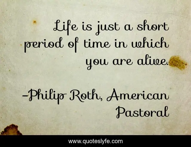 This page presents the quote "Life is just a short period of time in which you are alive.". Author of this quote is Philip Roth, American Pastoral. This quote is about life, death, truth,.