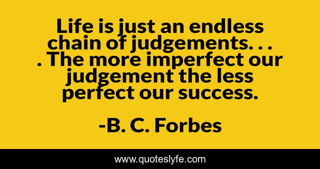 This page presents the quote "Life is just an endless chain of judgements. . . . The more imperfect our judgement the less perfect our success.". Author of this quote is B. C. Forbes. .