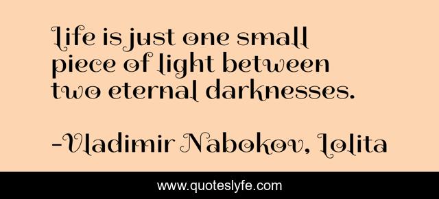 This page presents the quote "Life is just one small piece of light between two eternal darknesses.". Author of this quote is Vladimir Nabokov, Lolita. This quote is about humorous, erotic, insprirational,.