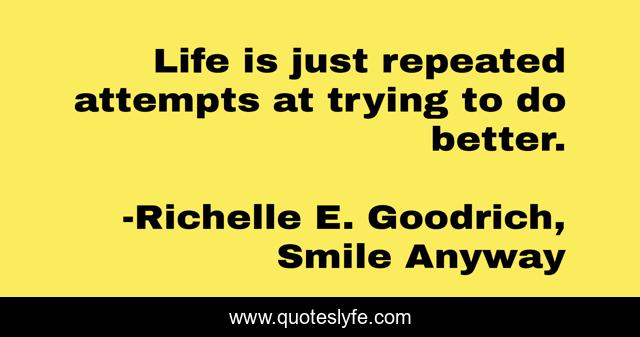 This page presents the quote "Life is just repeated attempts at trying to do better.". Author of this quote is Richelle E. Goodrich, Smile Anyway. This quote is about perserverance, life, richelle, resolution, endurance, drive, trial, persistance, determination,.