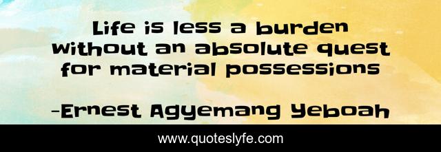 This page presents the quote "Life is less a burden without an absolute quest for material possessions". Author of this quote is Ernest Agyemang Yeboah. This quote is about joyful-life, the-meaning-of-life, life-challenges, materialism, staying-happy, materialism-versus-spiritualism,.