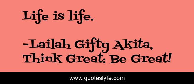 "Lailah Gifty Akita, Think Great: Be Great! Quotes." Quoteslyfe.com, 2025. Sat. 06 Dec. 2025. <https://www.quoteslyfe.com/quote/Life-is-life-124069>.