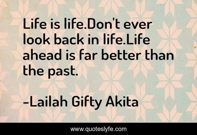 This page presents the quote "Life is life.Don't ever look back in life.Life ahead is far better than the past.". Author of this quote is Lailah Gifty Akita. .