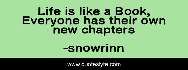 This page presents the quote "Life is like a Book, Everyone has their own new chapters". Author of this quote is snowrinn. This quote is about life-philosophy, life, inspirational, enthusiasm,.