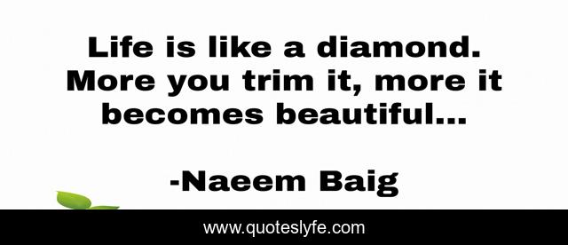 This page presents the quote "Life is like a diamond. More you trim it, more it becomes beautiful...". Author of this quote is Naeem Baig. This quote is about naeem-baig, fiction-writer, author,.