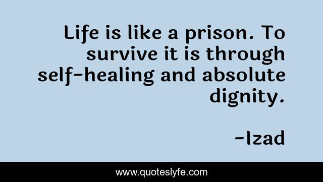 This page presents the quote "Life is like a prison. To survive it is through self-healing and absolute dignity.". Author of this quote is Izad. .