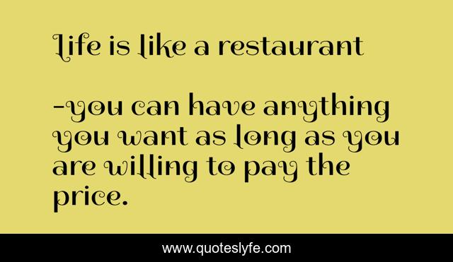 "you can have anything you want as long as you are willing to pay the price. Quotes." Quoteslyfe.com, 2025. Fri. 05 Dec. 2025. <https://www.quoteslyfe.com/quote/Life-is-like-a-restaurant-109062>.