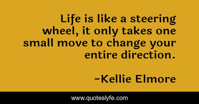 This page presents the quote "Life is like a steering wheel, it only takes one small move to change your entire direction.". Author of this quote is Kellie Elmore. This quote is about life, life-lessons, life-changing,.