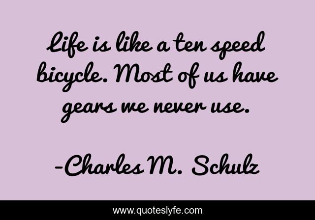 This page presents the quote "Life is like a ten speed bicycle. Most of us have gears we never use.". Author of this quote is Charles M. Schulz. This quote is about speed, bicycle,.
