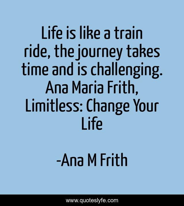 This page presents the quote "Life is like a train ride, the journey takes time and is challenging. Ana Maria Frith, Limitless: Change Your Life". Author of this quote is Ana M Frith. .
