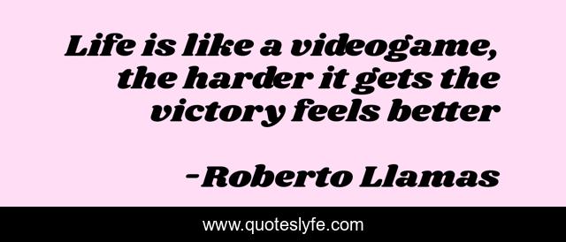 This page presents the quote "Life is like a videogame, the harder it gets the victory feels better". Author of this quote is Roberto Llamas. This quote is about survive, overcome, never-give-up,.